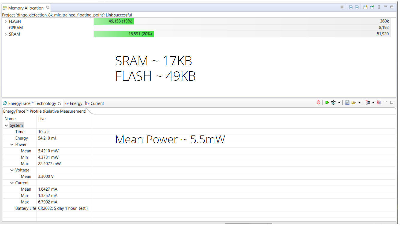 The Template SVM algorithm is implemented on TI's CC1352 chip (LAUNCHXL-CC1352R1) which has ARM Cortex M4F processor working at 48MHz. We have leveraged the TI-RTOS features in-order to have fine-control over the pooling of hardware resources, power and memory optimizations.